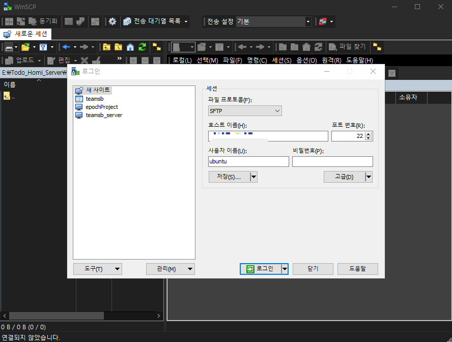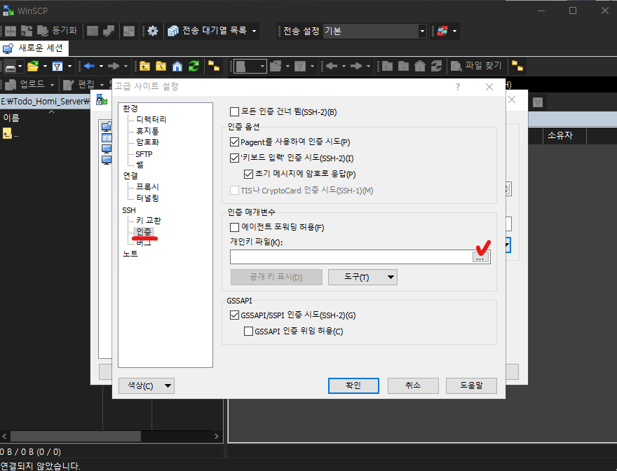 4. 이 방법으로 .ppk 키를 생성한 후 WinSCP에서 접속을 하면 접속이 가능합니다.