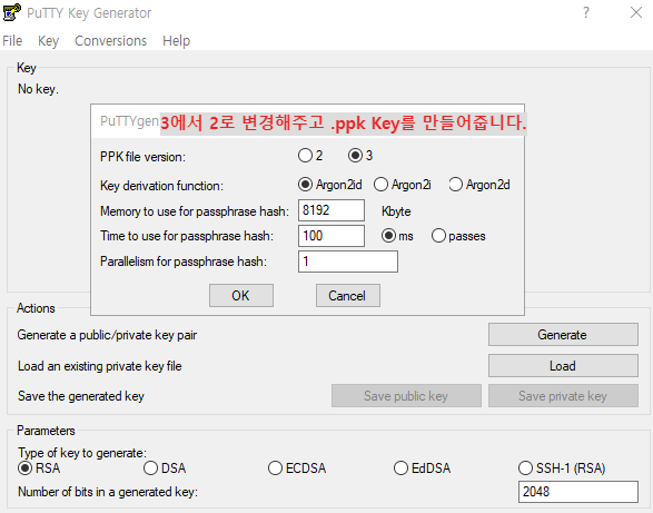 2. PPK file version을 3에서 2로 변경해줍니다.