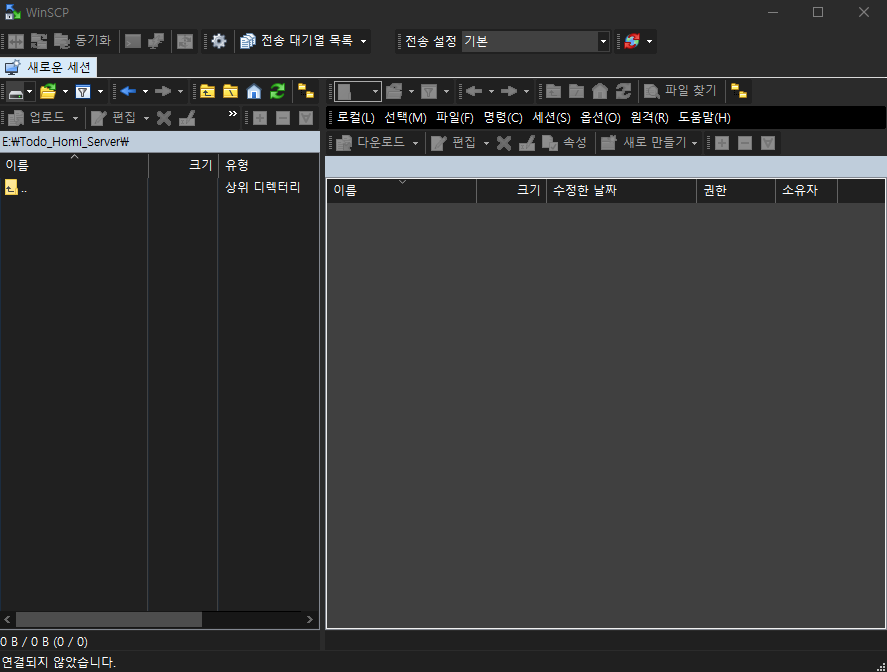- GUI로 표현된 FTP, SFTP 툴이며 드래그 앤 드롭 등을 지원하는 아주 유용한 툴입니다.