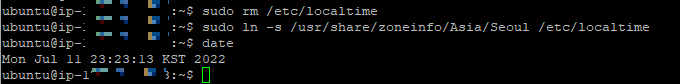시간 확인을 하면 변경된 것을 확인할 수 있습니다. date Mon Jul 11 21:46:57 KST 2022